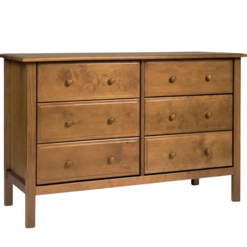 Simply sophisticated, the Jayden 6-Drawer Double Dresser by DaVinci Baby offers the optimal storage solution for any nursery or home. Pairing effortlessly with both the Jayden and Autumn Collection, the Jayden Double Dresser features the same transcending quality design. Made of durable New Zealand pine wood with new and improved metal drawer glide hardware and stop mechanism construction, Jayden provides a smooth and safe glide for long-lasting use through the years.