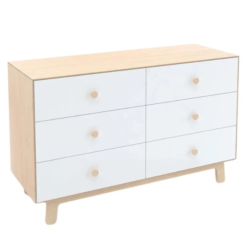 The Merlin 6-Drawer Dresser is a perfect fit with any of Oeuf’s furniture collections, from Classic to Perch. With its clean lines and quality construction, this dresser will be loved by parent and kid alike. Three deep drawers provide plenty of storage room, and the modern and simple styling make this dresser a piece that looks good in a bedroom or a nursery. Pairs with both Rhea and Sparrow cribs.