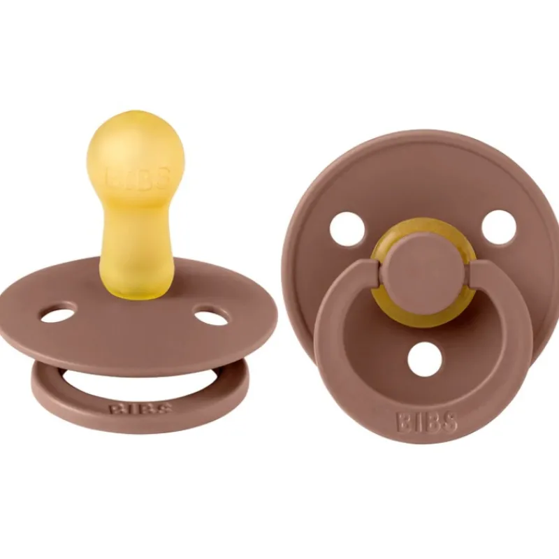 BIBS Colour pacifiers are thee original BIBS pacifier and has been on the market for over 45 years. It has the signature round BIBS shield with three vent holes and round BIBS engraved handle ring.Â