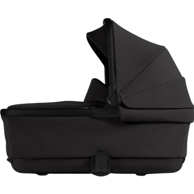 It lifts from the stroller frame with one hand and folds flat for easy storage and transportation. Inspired by compact suitcase technology, it has a hard-shell base while the bassinet itself is fully ventilated with antibacterial, hypoallergenic and super-soft Bamboo fabric.