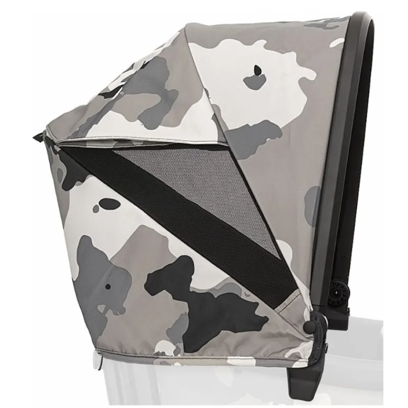 Veer’s Cruiser XL Retractably Canopy comes in original Heather Gray, or add a pop of colour or completely coordinate with Veer’s custom colour Sidewall Kits. It quickly and intuitively clips onto Cruiser XL’s frame and easily extends up and down. One or two can be attached, above either seat. A peak-a-boo window allows you to see your precious cargo and discreet, hidden magnets hold the window in the up position. Canopy works perfectly with Napper to create the perfect rest stop for young ones.