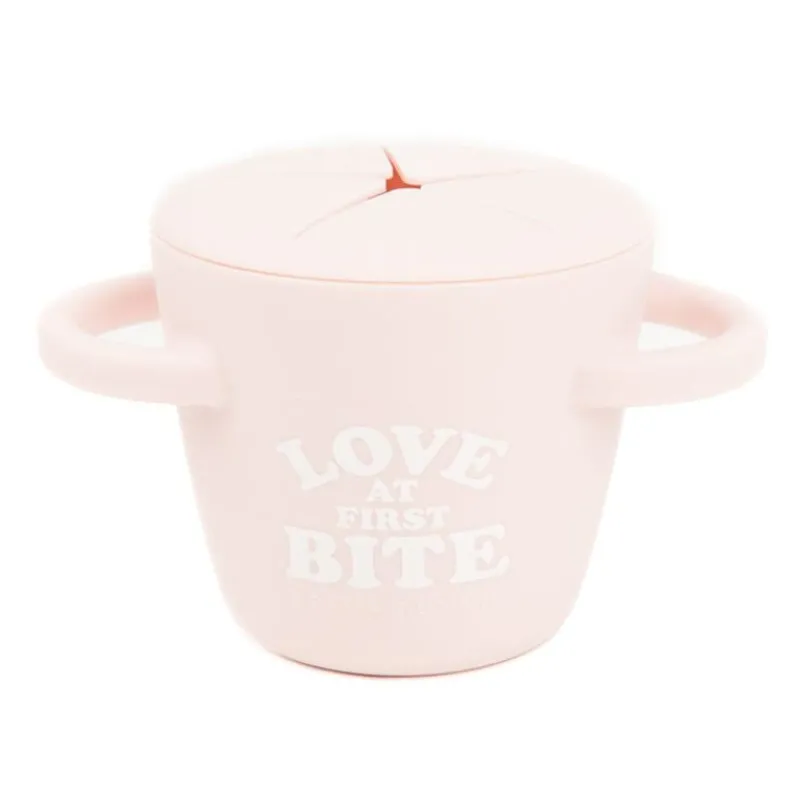 The horizontal handles allow the cup to securely fit in the car seat and stroller cup holders. The simple two-piece design makes pouring in snacks a breeze! The mess proof, tight lid stays in place. The soft silicone opening allows little hands to easily access food and prevents spills.rrrrJust pop the lid off when you are ready to clean it, each piece is dishwasher safe. Happy snacking!
