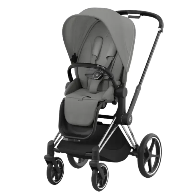 The sleek and stylish Cybex PRIAM 4 Stroller features faux leather details, premium fabrics, and comfort elements for effortless strolling adventures with your little one. It also boasts a compact freestanding fold and reversible seat for convenience.