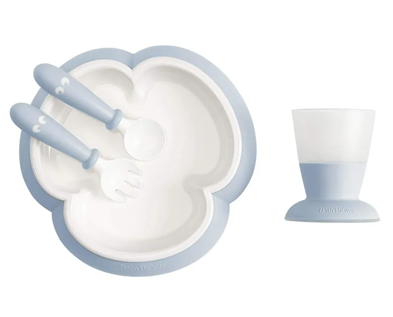 Yay, your baby is ready to self-feed! Use this feeding set from BabyBjorn to get them started. This smart baby feeding set was designed for small hands!