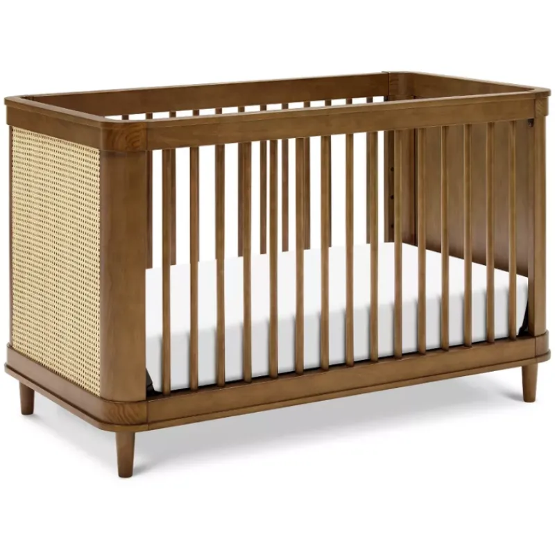Ease into contemporary style with the Marin 3-in-1 Convertible Crib. Featuring a gently curved silhouette with solid rounded cane side panels, the Marin is an effortlessly transitional piece for the home. Crib converts to a toddler bed and daybed, and fits any standard full-size crib mattress.