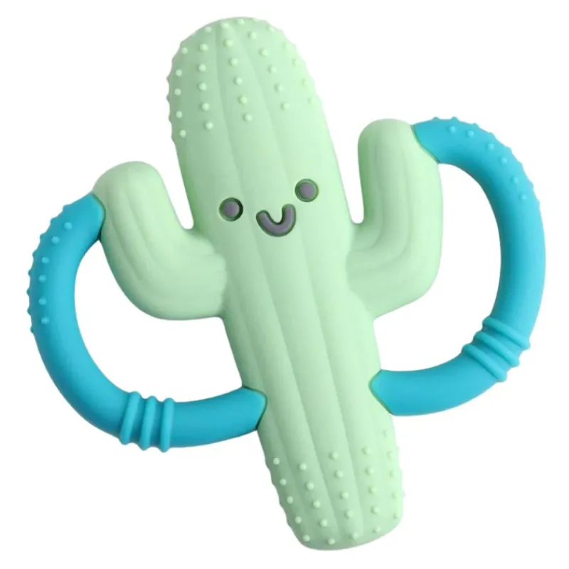 - Adorable silicone teether is designed with easy-grab handles for tiny hands