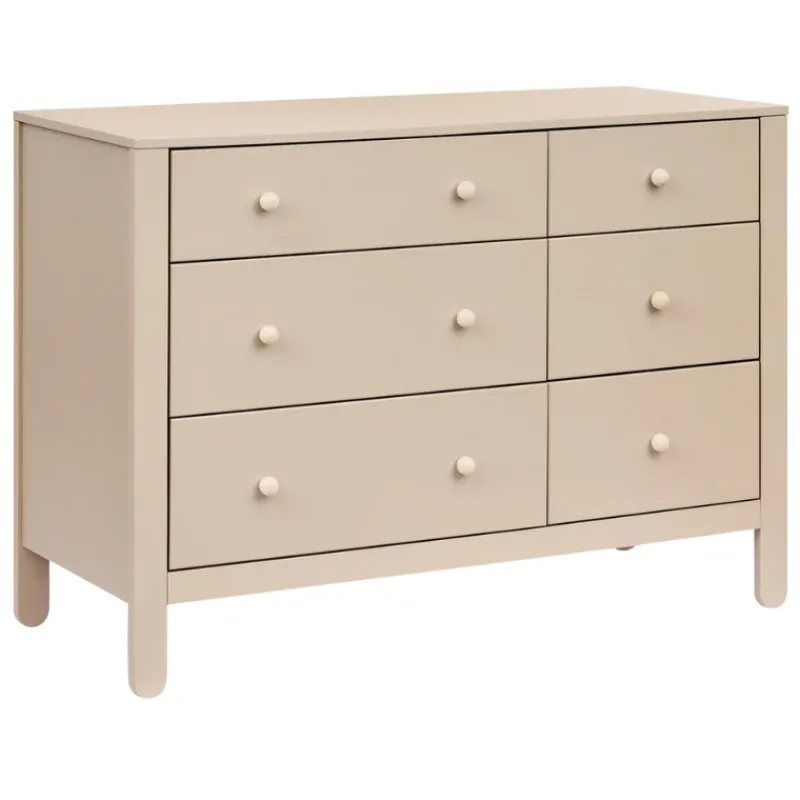 Combine playful charm and practicality with the Marisol 6-Drawer Dresser. With three large drawers for blankets and clothing and three smaller ones for everyday essentials, it features smooth ball-bearing glides for easy, quiet use. Its two-toned finish and whimsical popsicle-shaped feet add a modern yet fun touch, making it a stylish and functional piece that grows with your little one.