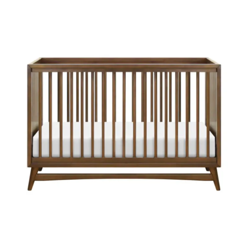 - REFINED MID-CENTURY MODERN STYLE: Featuring a modern, clean silhouette and classic rounded spindles. Flared tapered legs add a playful touch to this sophisticated crib.