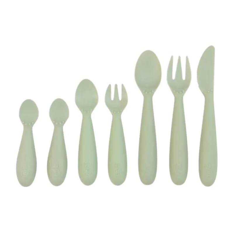 - Set includes Tiny Spoons (2-pack), Mini Utensils (spoon + fork) and Happy Utensils (spoon + fork + knife)
