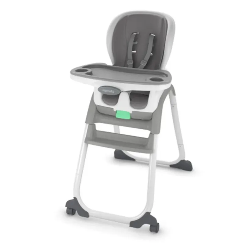 Kids grow up fast and the Ingenuity Full Course SmartClean 6-in-1 High Chair grows with them. Every inch was designed to help you conquer mealtime as it advances from puree splatters to picky eaters. This convertible high chair easily transitions from first foods chair to a traditional high chair to a chair top booster to a dining chair and toddler seat. When used as a booster and toddler chair, it can seat two children at the same time. The Feed Easy mini food tray makes less mess and intimate parent-baby bonding, alongside the main tray for bigger bites. Both trays easily slide out with a pinch. Keep your little one comfy (features 3 recline positions) and secure with the 5-point safety harness. The harness and straps are machine-washable, while the SmartClean EVA foam seat pad can be wiped clean. The portable high chair has 2 wheels, so it’s easy to move when not in use. Give baby a seat at the table that’ll change as much as the child’s taste buds. Messy eaters are no match for the Ingenuity Full Course SmartClean 6-in-1 High Chair.