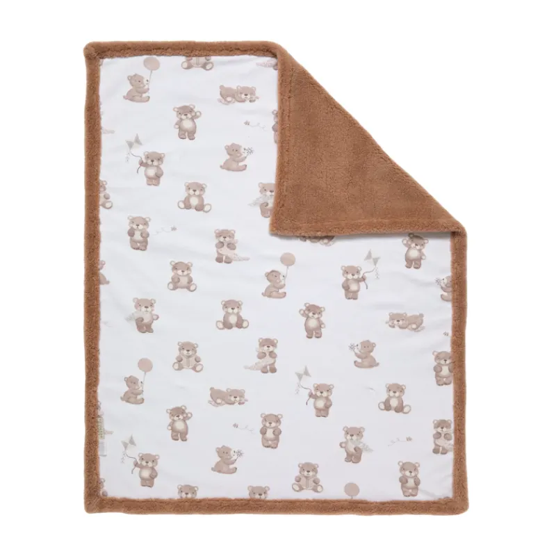 The jersey blanket is stretchy and drapes over your baby’s body snugly. It is also resistant to wrinkling and tearing. The other side, which is a plush sherpa lining, is perfect for cool afternoon snuggles.