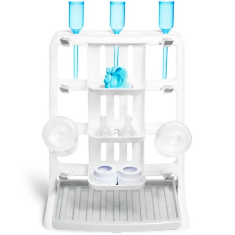 With a smart vertical design and clips to hold bottles at just the right angle for drying, this compact rack is the perfect match for limited counter space. There’s no need for multiple drying racks; this one has dedicated spots and slots to keep everything in one place, plus a drip tray that pulls out for more room when you need it. Uncluttered counters are finally within reach — and so are freshly cleaned baby bottles!