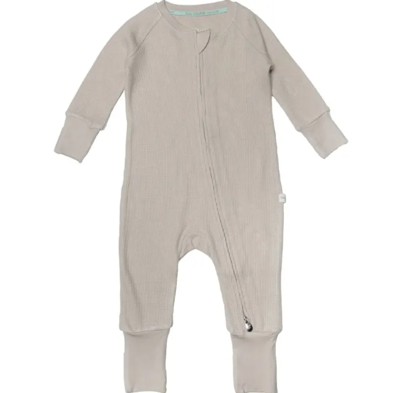 It features a full two-way zipper to make diaper change easy, flat seams on the shoulder and sides of the body, and a printed inner care label to reduce irritations for babies’ delicate skin. These sleepers are updated with fold-over handcuffs and foot cuffs of all sizes.