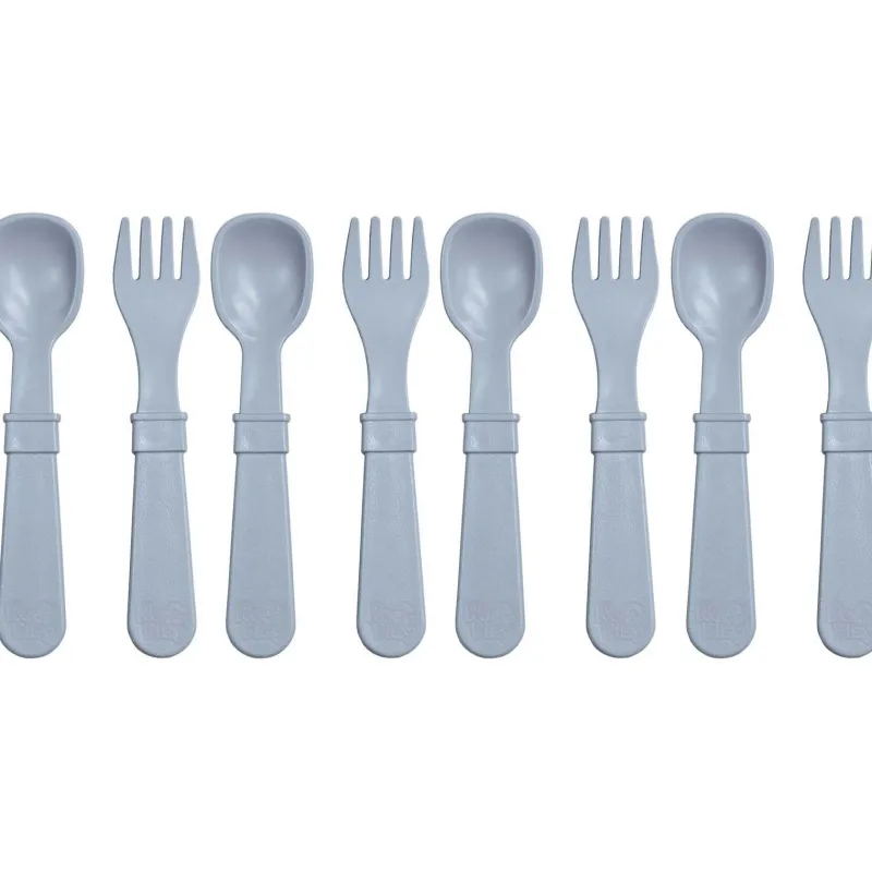 Encourage self-feeding with these Re-Play’s Toddler Utensils. Coming in a set of 8 which includes 4 forks and 4 spoons this set is perfect for mealtime. In fun and vibrant colours, these utensils are durable and affordable. The forks feature rounded tips for safety and spoons have a deep scoop for the hungriest toddlers. Mix and match utensils with our plates, bowls, and cups to create a vibrant tableware set!