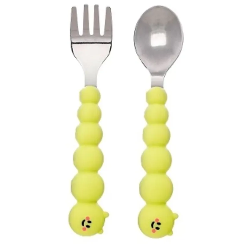 - Whimsical caterpillar spoon and fork will quickly become your child’s favourite utensilsrS