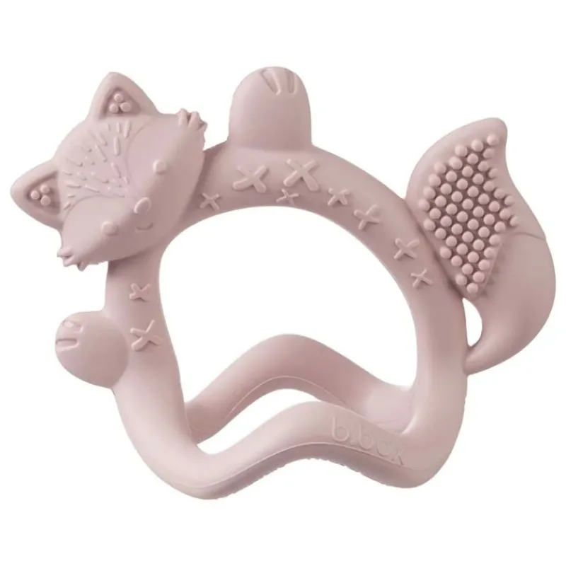 - Fox character designed to relieve gums throughout the various stages of the teething journey