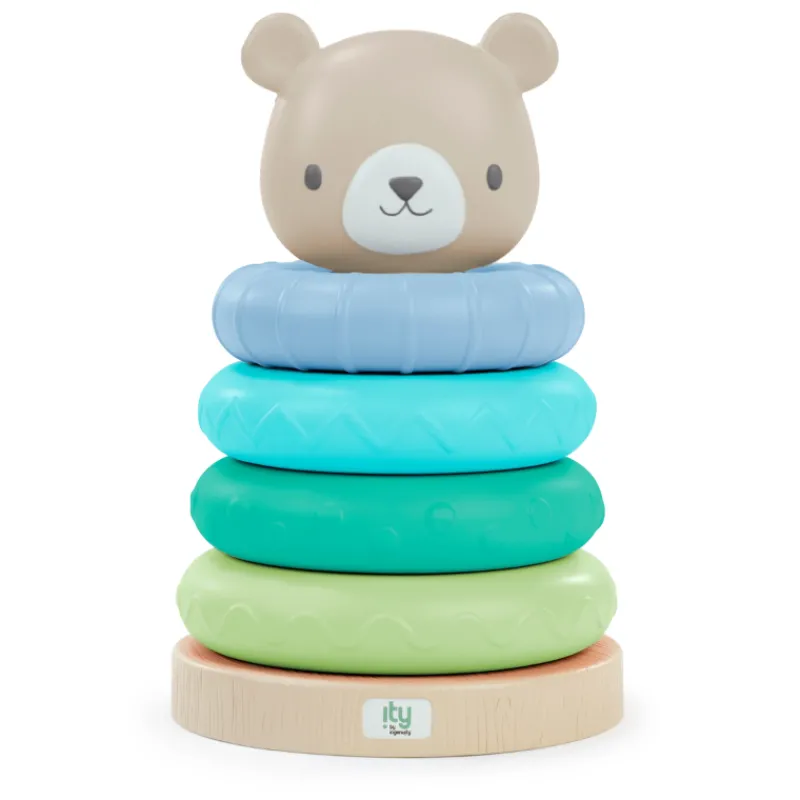 Unpack a wonderful way for infants and toddlers to discover textures and colors with the ity by Ingenuity Cutie Stacks! Adorable “a-ha” moments are only a stack away. Topped with super-cute characters, Nate the bear or Nally the Owl, Cutie Stacks comes with a faux wood stand and 4 colourful, lightweight, BPA-free multi-textured rings that are easy for baby to hold and stack​. Cutie Stacks are an engaging way to aid infants in developing sensory skills, such as colour learning, and helps stimulate gross motor development through stacking. This infant stacking toy coordinates with other woodland-inspired characters in the ity by Ingenuity collection.