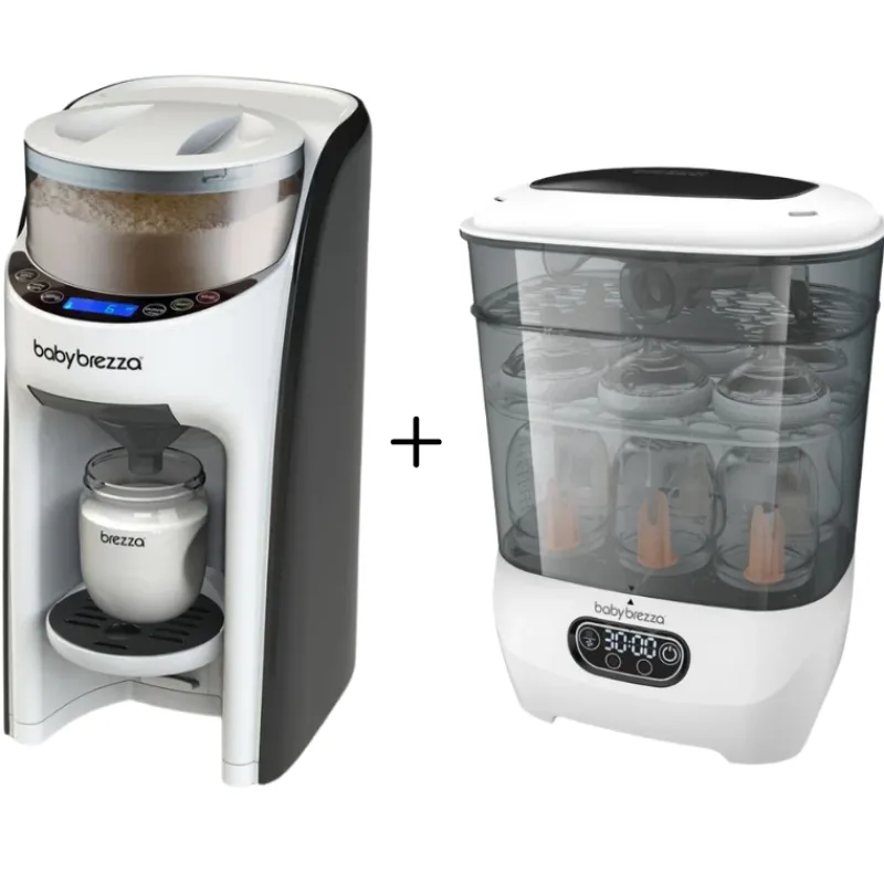 Simplify bottle prep and sterilization with this all-in-one bundle. The Baby Brezza Formula Pro Advanced makes perfectly mixed, temperature-controlled bottles in seconds, while the Sterilizer Dryer Advanced kills 99.9% of germs and dries bottles quickly with HEPA-filtered air. A powerful duo for busy parents.