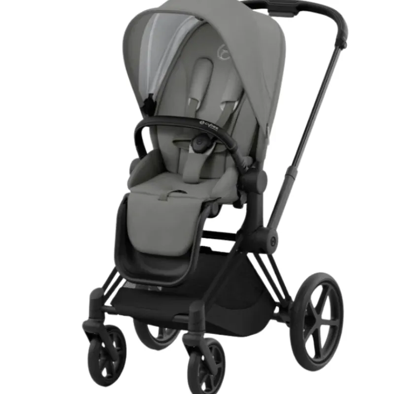 The CYBEX PRIAM 4 stroller combines timeless design elements with new features that make life even easier and meet your highest expectations. The unique one-pull harness helps you secure your child in the stroller in seconds, with just one hand. One frame enables three different modes of use: from birth with the PRIAM 4/e-PRIAM 2 Lux carry cot or any CYBEX infant car seat (both sold separately), and later with the seat unit as a luxurious parent-facing or forward-facing stroller.Â