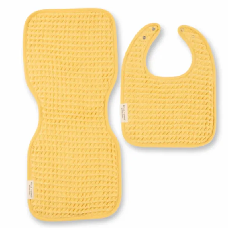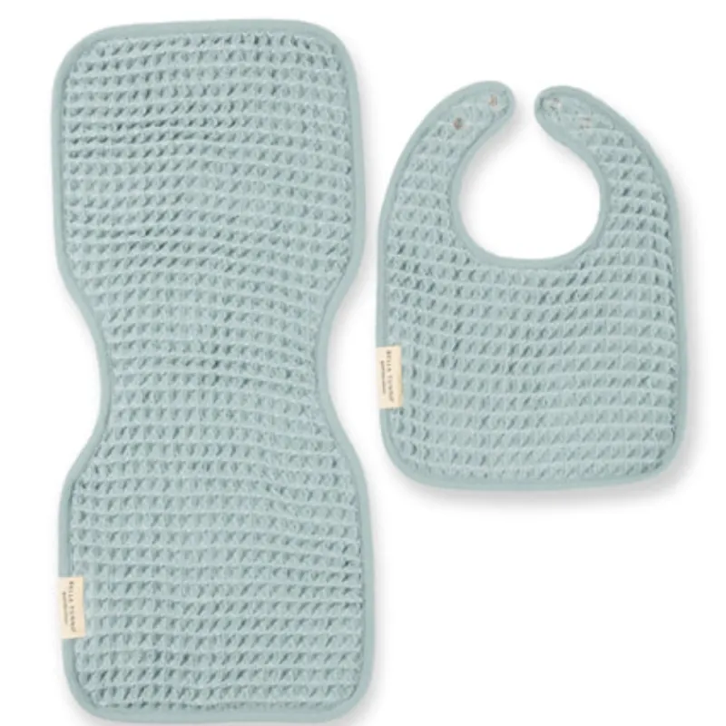Keep yourself and baby clean, comfortable, and colorful with the Bella Tunno reversible burp cloth and bib. Featuring luxe lofty waffle weave on one side and a soft, absorbent terry on the other. All fabrics are OEKO-TEX certified and sustainably sourced, but the commitment to our environment goes deeper – each recycled polyester is made from plastic bottles removed from oceans and landfills. Each Reversible Bib and Burp set keeps 4 plastic bottles out of landfills.