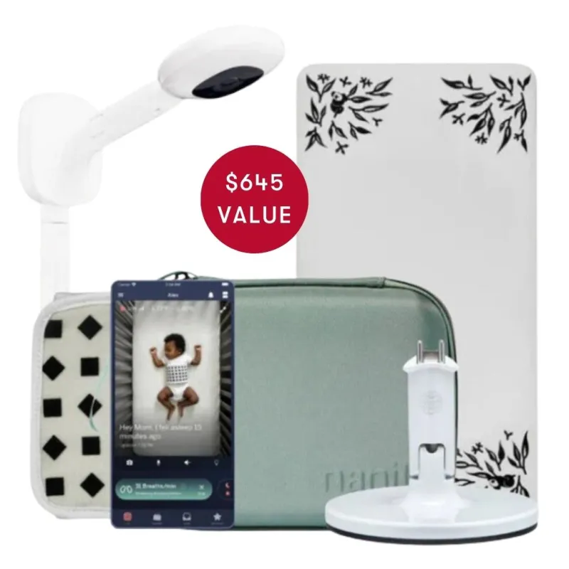 A Snuggle Bugz Exclusive valued at $645! With the Nanit Ultimate Bundle, sweet dreams are guaranteed. This limited-edition 8 piece bundle combines the award-winning Nanit Pro Camera with its crystal-clear 1080p video for peace of mind, flex stand, travel case, smart sheet and 3 Nanit swaddles for ultimate baby comfort. Watch over your little one from anywhere using your smartphone and ensure they sleep soundly swaddled in soft, breathable fabric. The perfect gift for new parents or to upgrade your nursery with top-notch monitoring and cozy comfort.