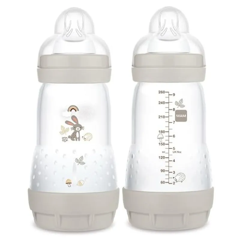 The MAM Easy Start™ Anti-Colic Bottle is the ideal baby feeding bottle for newborns: babies can drink at their own pace in a relaxed manner. Whether you’re using baby formula or expressed breast milk, MAM bottles will support you every step of the way — the elongated nipple shape feels just like mom so you can easily switch between breastfeeding and bottle feeding. The MAM Easy Start Self-Sterilizing Anti-Colic Bottle is the perfect fit for newborns, specially designed to minimize colic symptoms while feeding. The innovative vented base allows for an even drinking flow, helping to reduce colic for 80%* of babies.