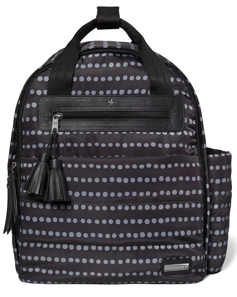 The Skip Hop Riverside Diaper Backpack combines lightweight practicality with chic style. Made from water-resistant materials and accented with luxe vegan leather, it keeps essentials organized without weighing you down.