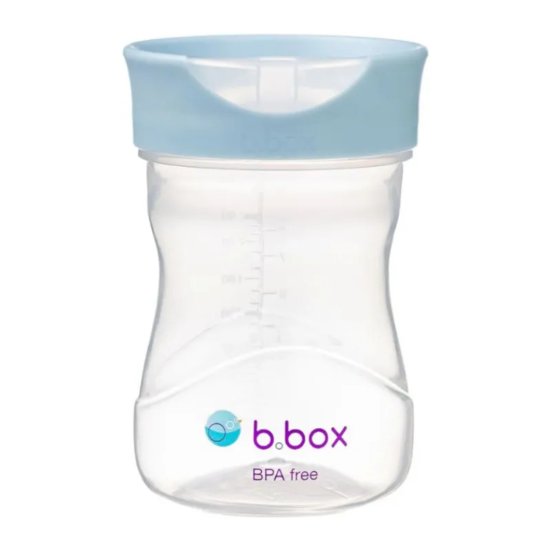 Lets little kids drink like big kids. The training cup b.box is the ideal way for kids to learn to drink from a cup. It mimics the flow of a big kids cup, by funneling liquids into the rim for easy free-flow drinking. The cup also features a unique water window in the lid so kids can learn to see water as they’re drinking and judge how much to tilt their cup. Interchangeable base and lid means you can switch between the spout, sippy cup and training lids as baby grows.