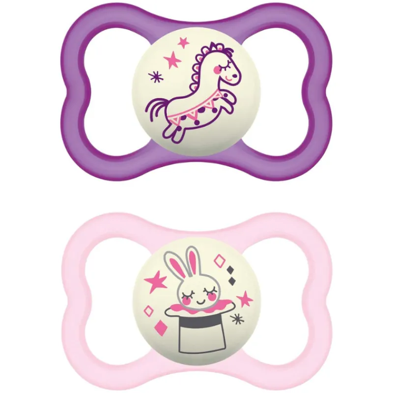 - Glows in the Dark – These night pacifiers glow in the dark, making it easy for you to locate them quickly at night without any stumbling and searching, helping baby sleep better.