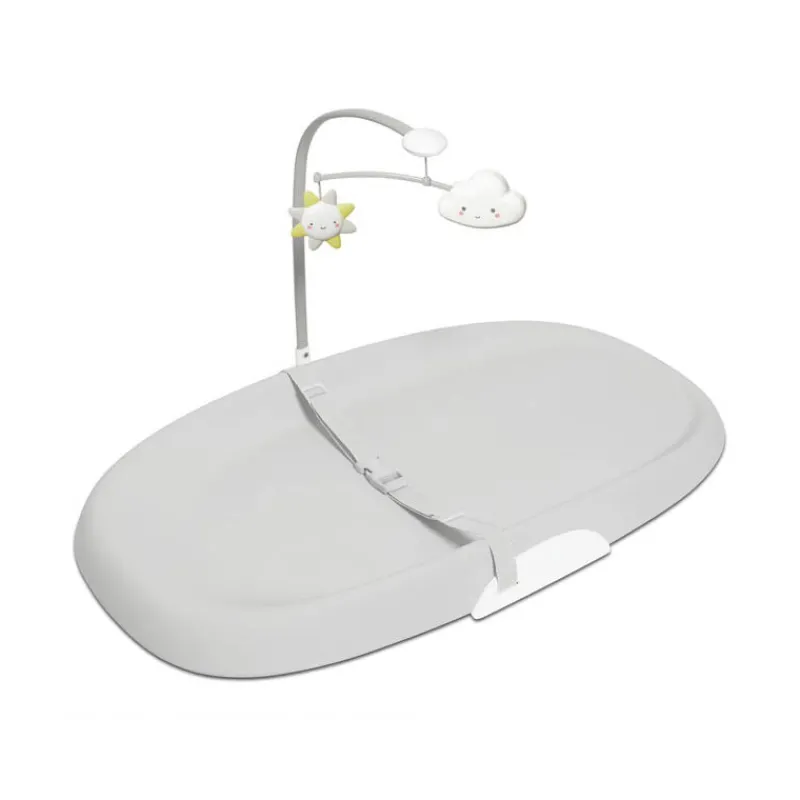 With no crevices to trap messes and a water-resistant surface, it’s a smart and hygienic solution for busy parents. A tuck-away toy bar with a soft, engaging toy keeps baby entertained and wiggle-free during changes, giving you a few extra moments of calm.