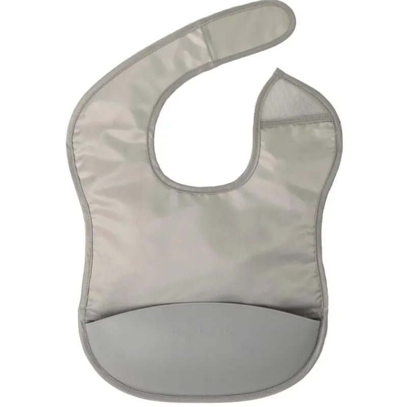 - Large flip pocket stays open to catch spills and food