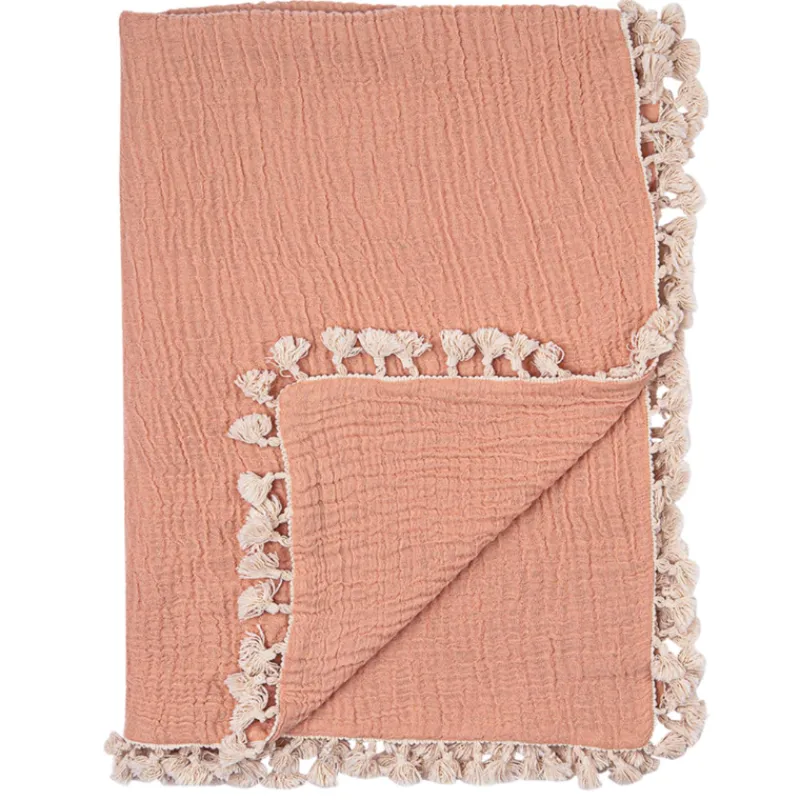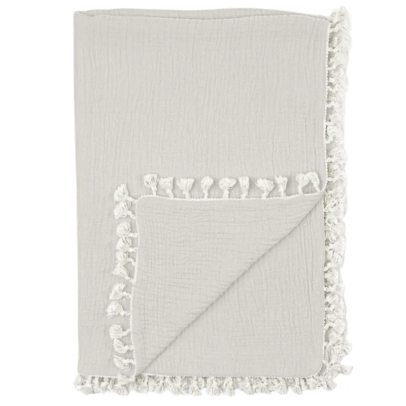 Indulge in the enchanting ambiance of your baby’s nursery with Crane Baby’s Tassel Muslin Blanket. Whether draped over your rocking chair or swaddling your little one during tranquil strolls, it exudes comfort and timeless style. With 6 layers and a feather-light feel, it wraps your baby in a snug and gentle embrace. The easy-care machine washable fabric ensures effortless maintenance while seamlessly complementing a range of baby bedding sets.