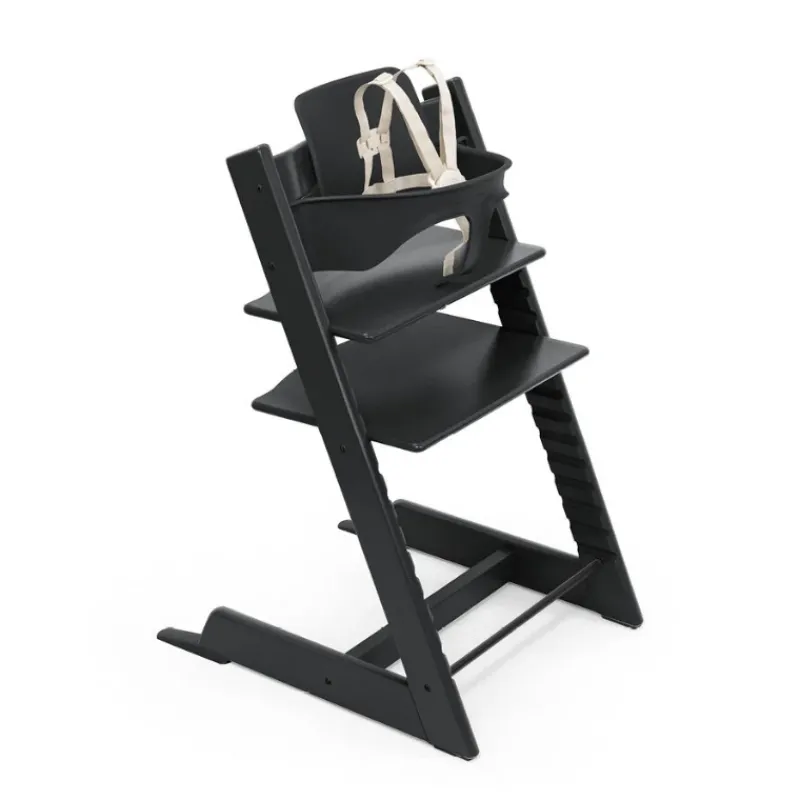 - Includes Tripp Trapp chair + baby set with harnessNew and improved, intuitive harness buckle with 2 click-in points and a quick, one-click release button